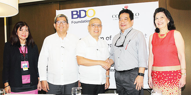 The agreement was signed by BDO Foundation President Mario Deriquito, Trustee Jerome Guevarra and Program Director Rose Espinosa; and Consuelo Foundation Director for Administration Anne Marie Chanco and Director for Programs Nicanor Torre.