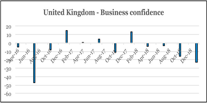 The positive effects after a clarification, like an upbeat UK stock market, now start to come seriously under pressure. As the graphics show, confidence among both consumers and companies dropped significantly during the recent months. When exploring the stock market, the consequence is that a narrower spectrum of companies will be interesting for investors. In other words, a bigger part of stock prices must correct downwards again, before they are attractive, which is the financial market’s expression of increasing uncertainty.