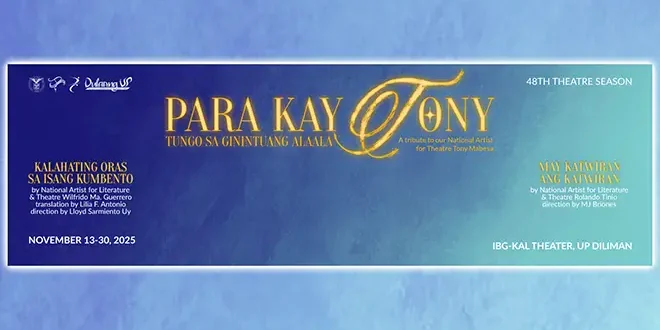 After the success of “Nanay Bangis” and “Mga Anak ng Unos,” Dulaang Unibersidad ng Pilipinas (Dulaang UP) returns to the stage by paying tribute to its founder and National Artist for Theater Antonio ‘Tony’ Mabesa. The tribute, titled “Para kay Tony: Tungo sa Ginintuang Alaala,” is a twin bill showcasing two productions that capture the spirit of Dulaang UP’s nearly five-decade history.