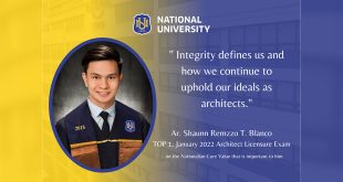 NU’s Ar. Shaunn Remzzo T. Blanco, led the 1370 (out of 2205) board passers, taking the top spot with an overall rating of 83.50% in the January 2022 Architect Licensure Examination. A son of a registered nurse and an architect, Shaunn dreamt to be an architect since he was young, “When I was a child, I (only) wanted to build …