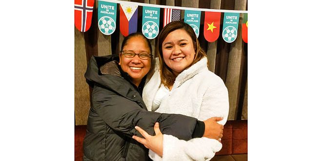 She was accompanied by her former La Salle-Lipa player, Kathleen de Torres, who now works in this city as a nurse , to the first Group A match between host New Zealand and Norway at the iconic Eden Park on