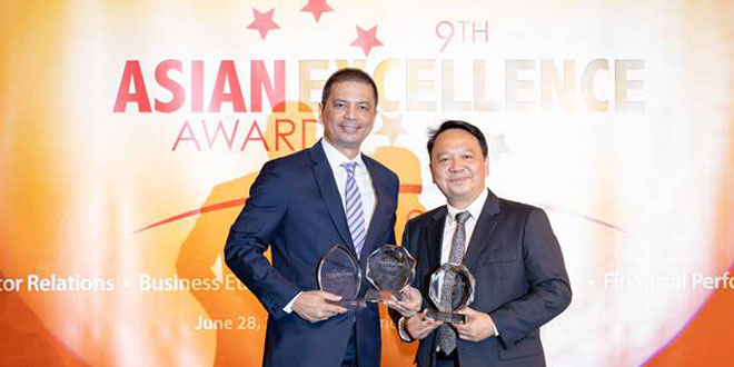 Now on its 9th year, the Asian Excellence Awards recognizes companies for their achievements and superiority in management acumen, financial performance, corporate social responsibility, environmental practices and investor relations. Winners were selected from several countries across the region, including China, Hong Kong, India, Japan, Korea, Indonesia, Malaysia, Singapore, Taiwan, Thailand, Vietnam, and the Philippines.