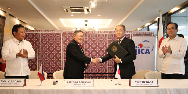 The agreement was signed by Finance Secretary Carlos Dominguez III on behalf of the Philippines, and Yoshio Wada, the chief representative in the Philippines of the Japan International Cooperation Agency (Jica), on behalf of Japan.