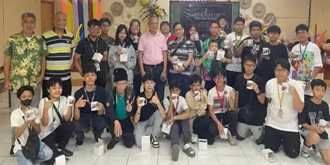 IMs Angelo Young and Idel Datu, NM Edmundo Gatus and FIDE instructor Chiara Datu join ERJHS Alumni Association president Ramon Ferrerros and secretary Ed Andaya and participants for a souvenir photo during the “Learn and Play Chess with the Masters II” at the E. Rodriguez Jr. High School Audio-Visual Room in Mayon Ave., Quezon City.
