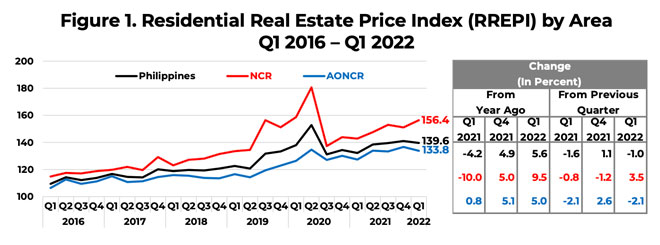 Residential property prices in the NCR increased by 9.5 percent YoY, primarily driven by the increase in the prices of condominium units and townhouses, which more than offset the decrease in the prices of duplex housing units and single-detached/attached houses. Similarly, property prices in the AONCR rose by 5 percent YoY as all types of housing units registered an upturn, except for single-detached/attached houses, which posted a decline.